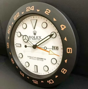 This premium luxury wall clock collection is inspired by iconic Rolex designs including the Explorer II, Daytona Cosmograph, and GMT-Master. Each clock features a high-detail dial, rotating-bezel style design, and a silent sweeping movement for a classy, noise-free experience. Ideal for living rooms, offices, studios, shops, garages, and man-caves, these clocks offer both decoration and precision timekeeping in one stunning display piece.